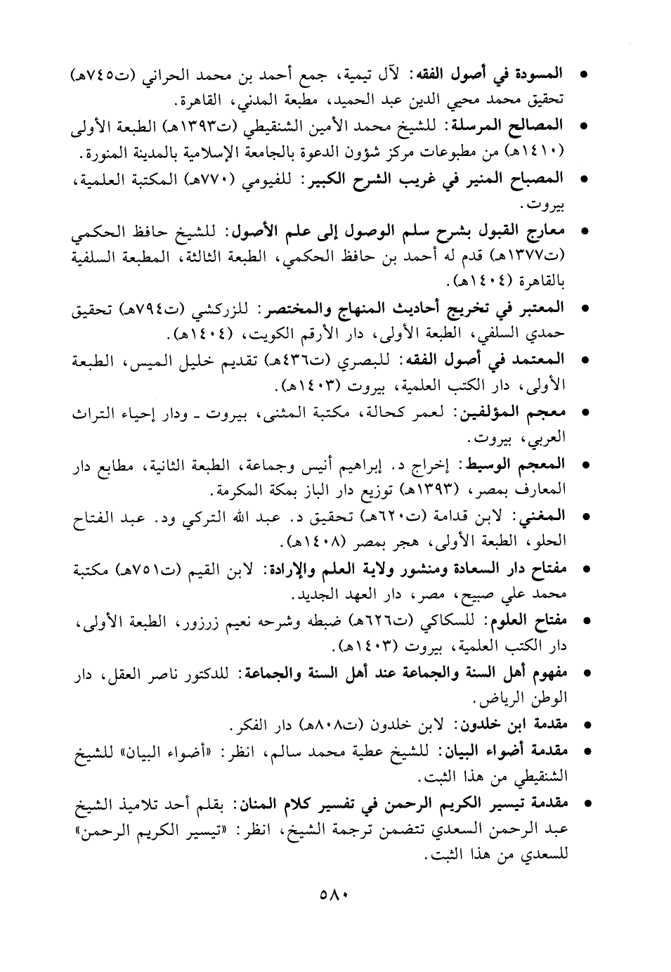 (معارج القبول بشرح سلم الوصول إلى علم الأصول: للشيخ حافظ الحكمي (ت1377هـ) قدم له أحمد بن حافظ الحكمي، الطبعة الثالثة، المطبعة السلفية بالقاهرة (1404هـ) .