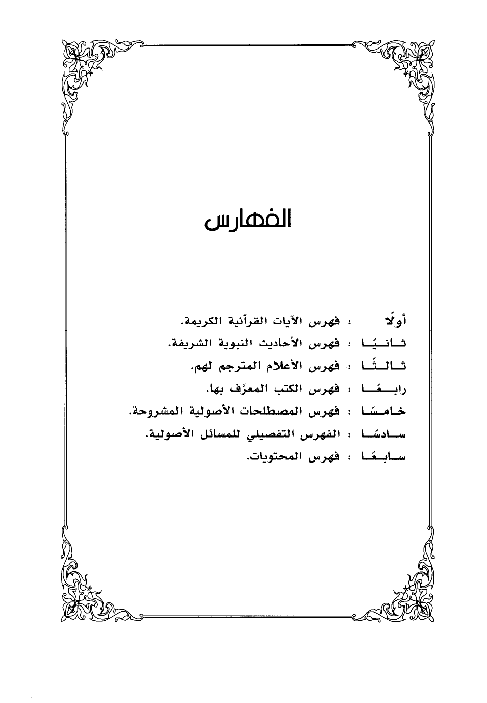 سادسًا: الفهرس التفصيلي للمسائل الأصولية.
