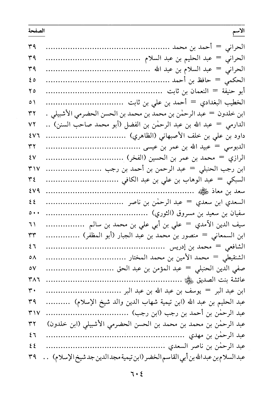 عبد السلام بن عبد الله بن أبي القاسم الخضر (ابن تيمية مجد الدين جد شيخ الإسلام) . ... 39