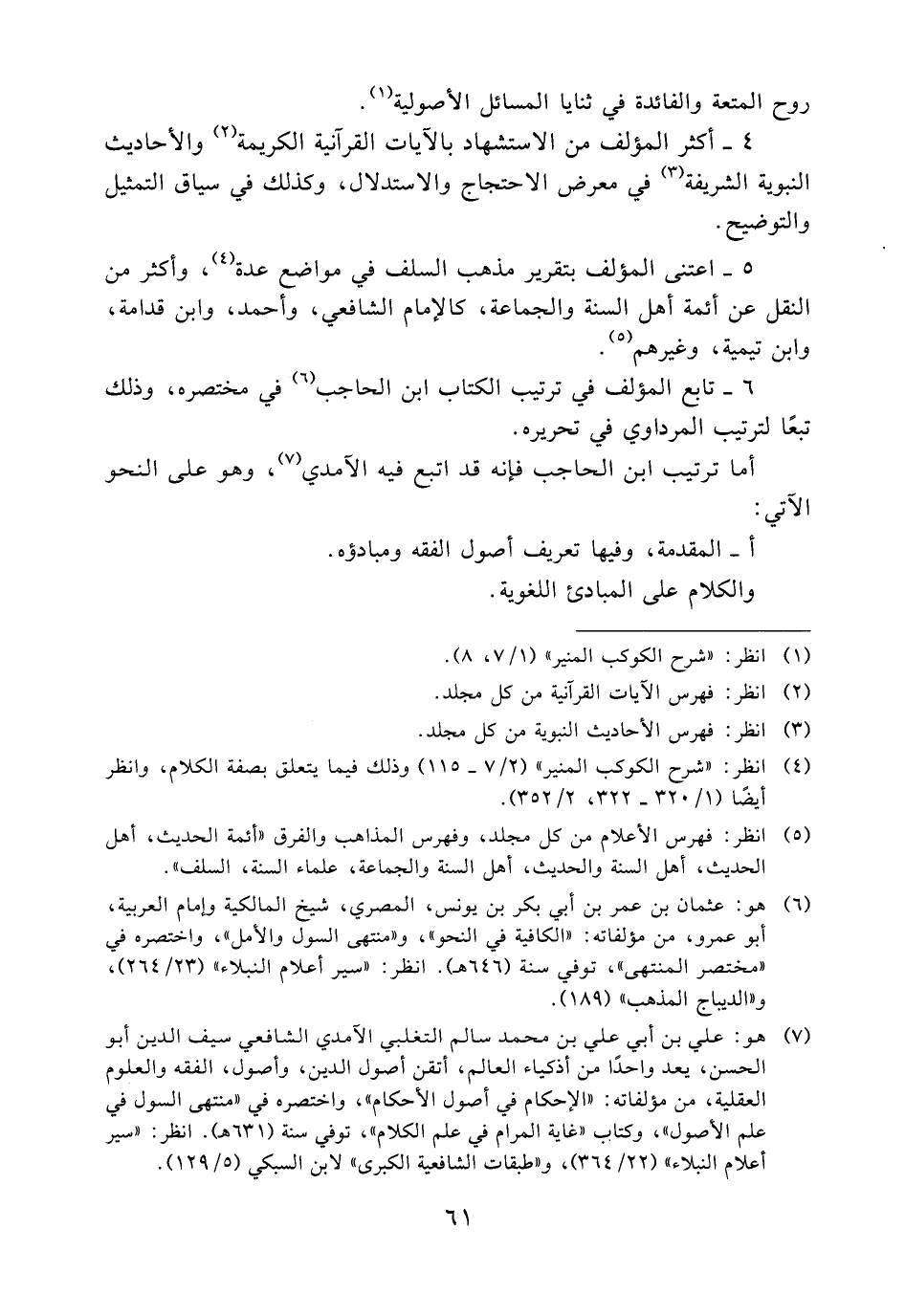 6- تابع المؤلف في ترتيب الكتاب ابن الحاجب (6) في مختصره، وذلك تبعًا لترتيب المرداوي في تحريره.