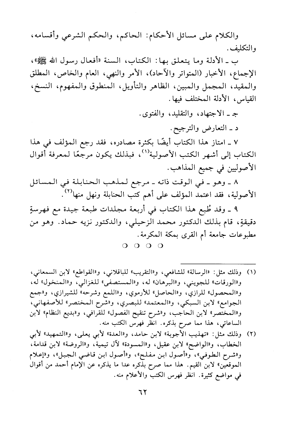 8- وهو – في الوقت ذاته – مرجع لمذهب الحنابلة في المسائل الأصولية، فقد اعتمد المؤلف على أهم كتب الحنابلة ونهل منها (2) .
