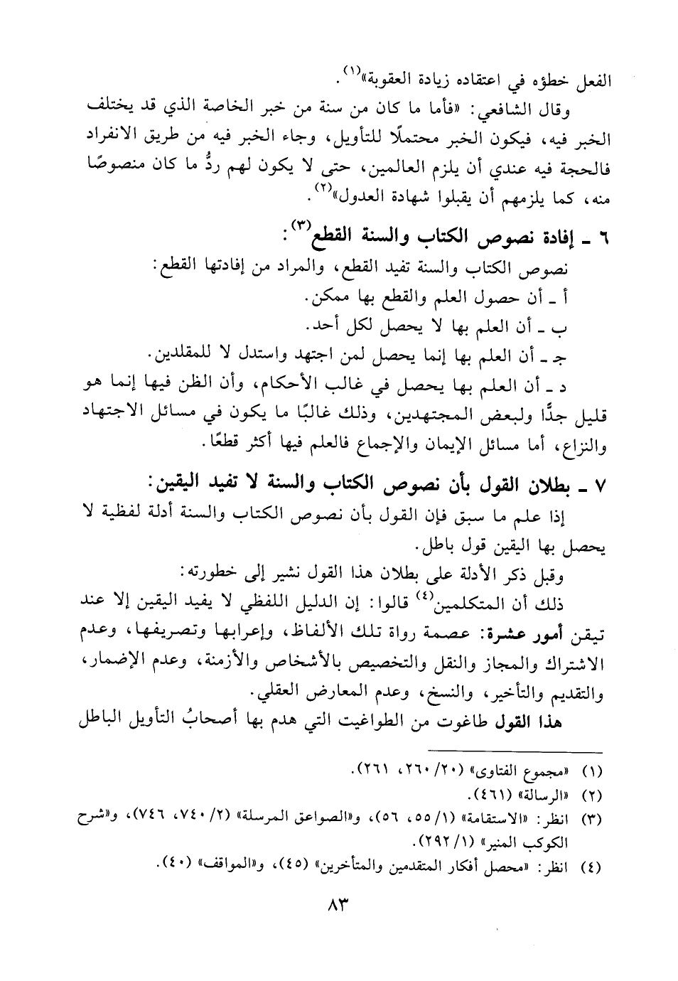 6- إفادة نصوص الكتاب والسنة القطع (3) :