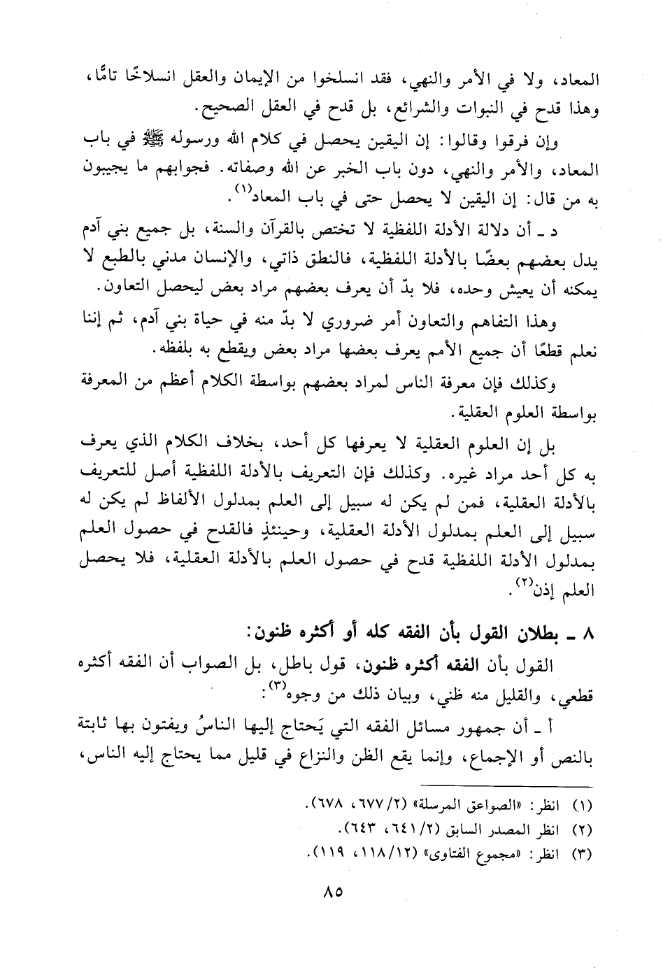 8- بطلان القول بأن الفقه كله أو أكثره ظنون: