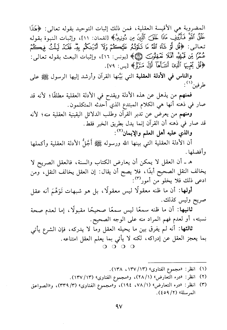 (3) انظر: "درء التعارض" (1/78، 194) ، و"مجموع الفتاوى" (3/339) ، و"الصواعق المرسلة" (2/459) .