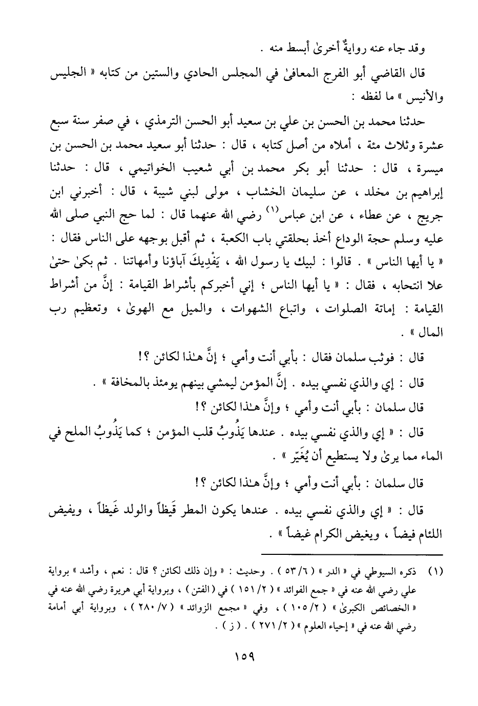 قال القاضي أبو الفرج المعافى في المجلس الحادي والستين من كتابه "الجليس والأنيس" ما لفظه: