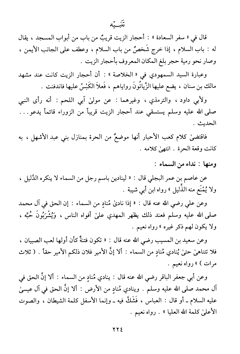 عن عاصم بن عمر البجلي قال: "لينادين باسم رجل من السماء لا ينكره الدَّليل، ولا يُمْنَع منه الذَّليل" رواه ابن أبي شيبة.