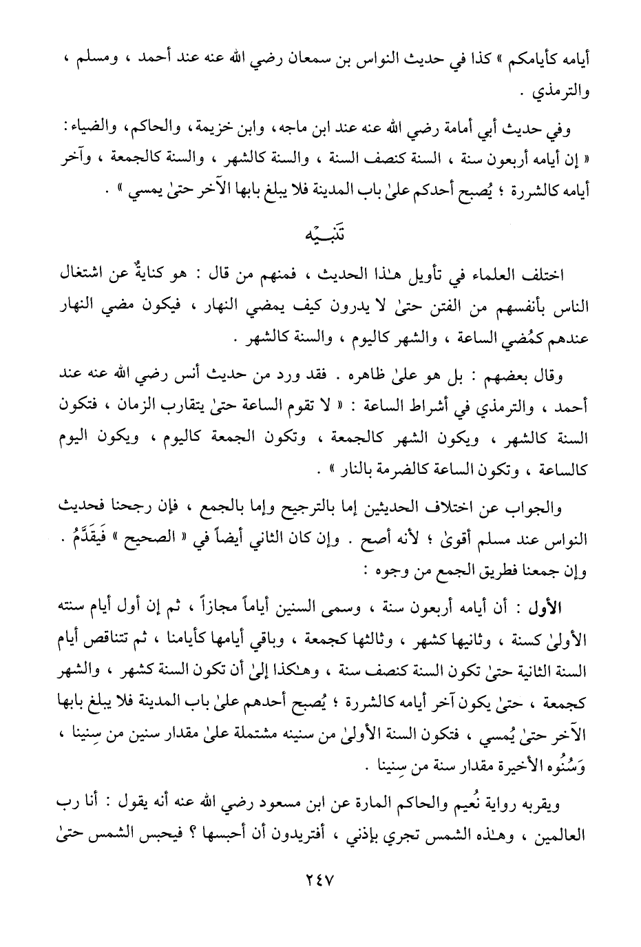 أيامه كأيامكم" كذا في حديث النواس بن سمعان - رضي الله عنه - عند أحمد، ومسلم، والترمذي.