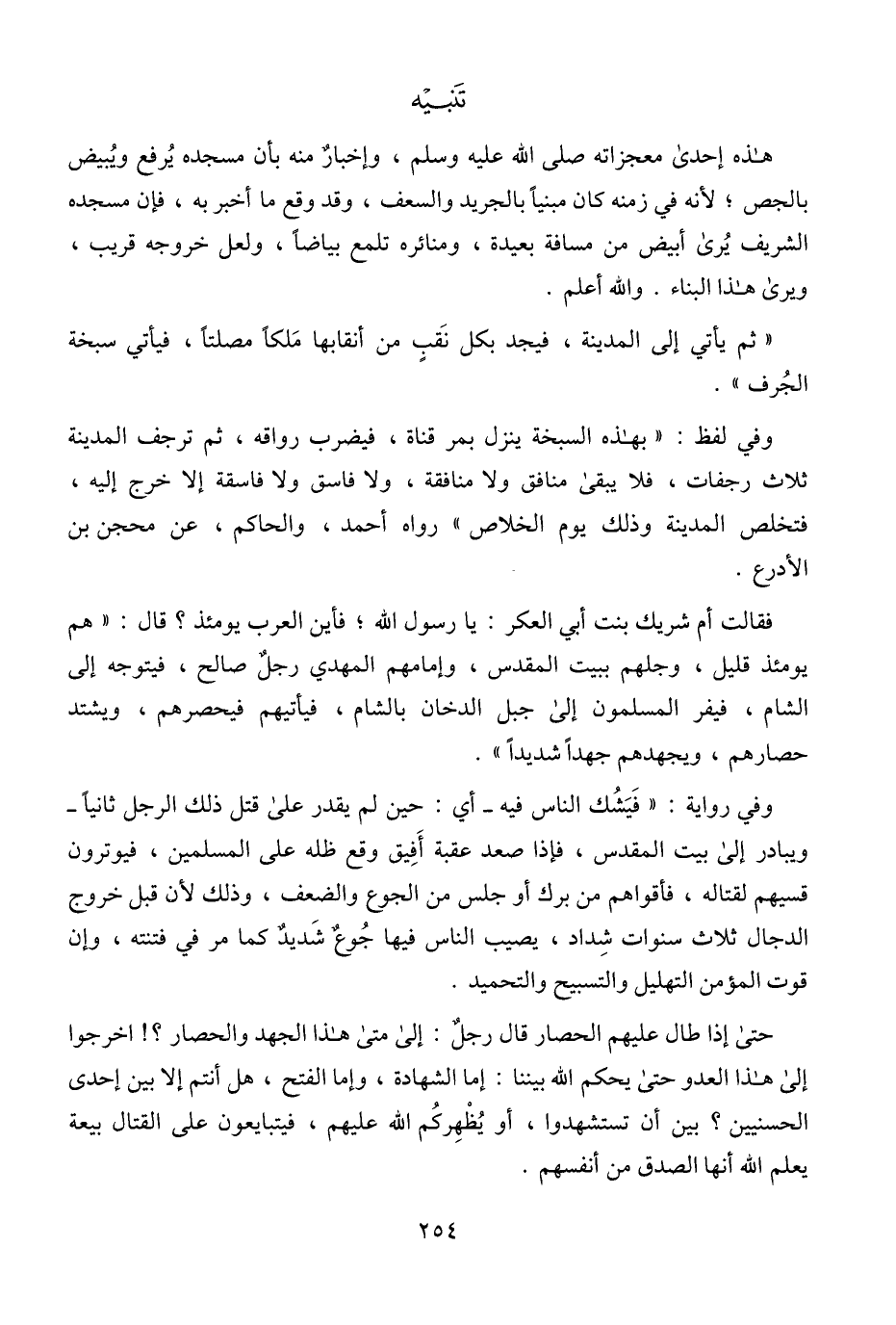 "ثم يأتي إلى المدينة، فيجد بكل نَقبٍ من أنقابها مَلكًا مصلتًا، فيأتي سبخة الجُرف".