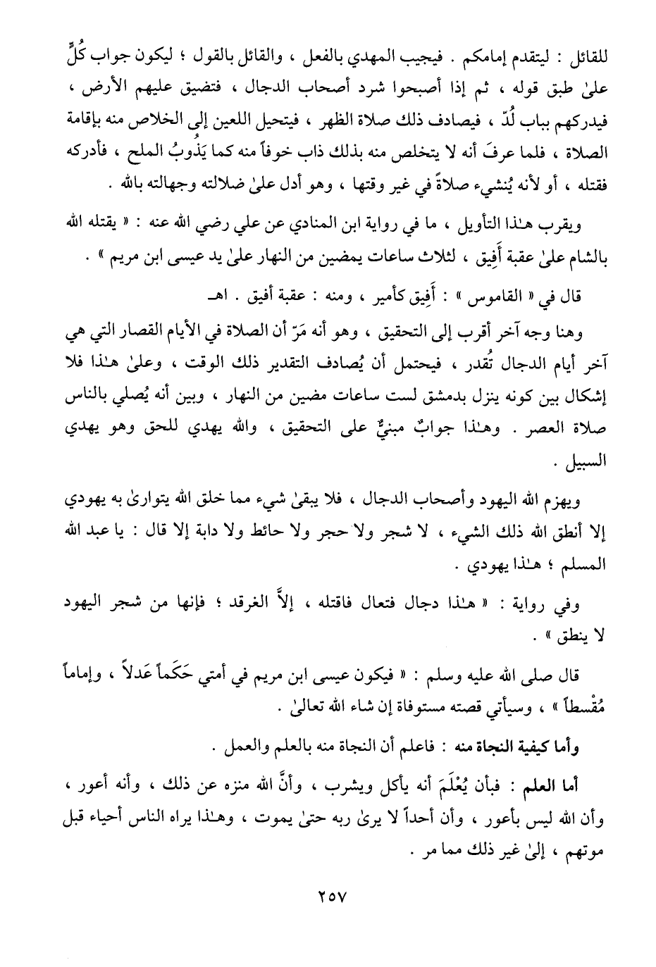 ويقرب هذا التأويل، ما في رواية ابن المنادي عن علي - رضي الله عنه -: "يقتله الله بالشام على عقبة أَفِيق، لثلاث ساعات يمضين من النهار على يد عيسى ابن مريم".