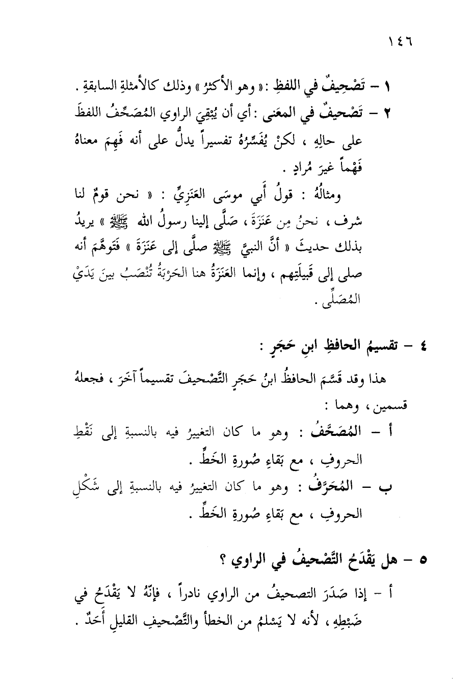 هذا وقد قسم الحافظ ابن حجر التصحيف تقسيما آخر، فجعله قسمين، وهما: