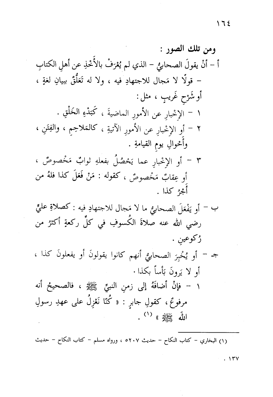 ج- أو يخبر الصحابي أنهم كانوا يقولون أو يفعلون كذا، أو لا يرون بأسا بكذا.