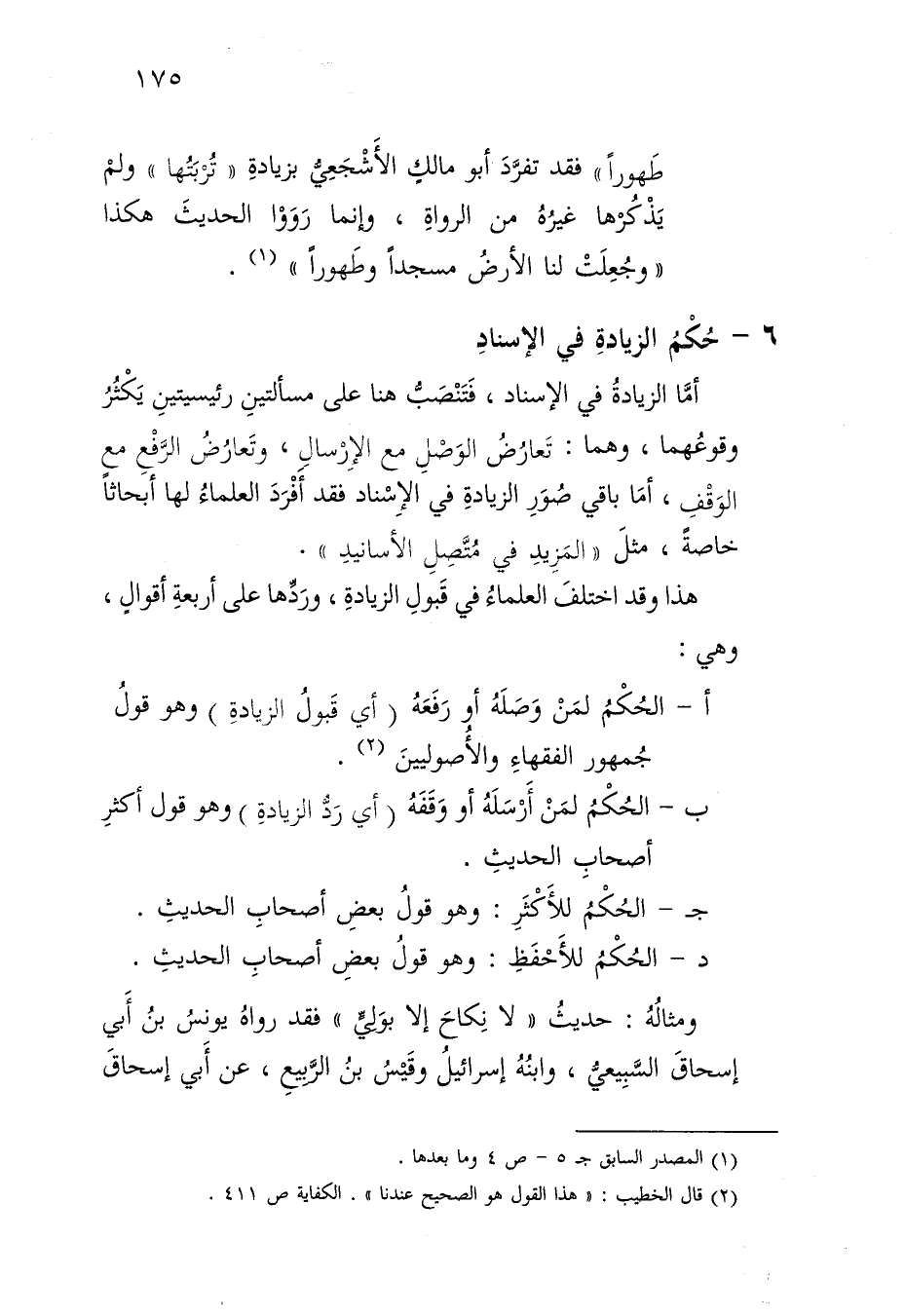 أ- الحكم لمن وصله أو رفعه "أي قبول الزيادة" وهو قول جمهور الفقهاء والأصوليين2.
