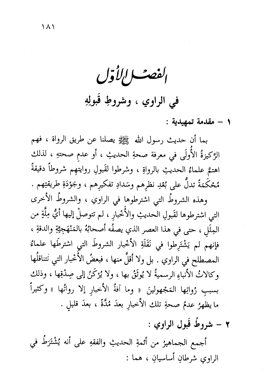 الفصل الأول: في الرواي، وشروط قبوله