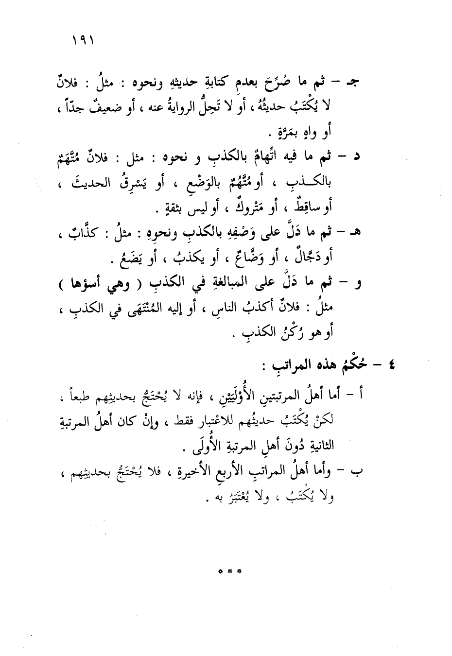 ب- وأما أهل المراتب الأربع الأخيرة، فلا يحتج بحديثهم، ولا يكتب، ولا يعتبر به.