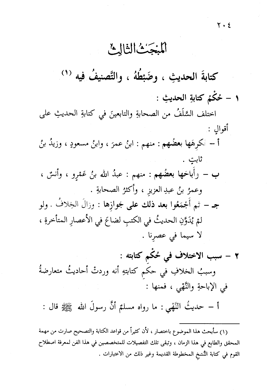 المبحث الثالث: كتابة الحديث، وضبطه، والتصنيف فيه 1