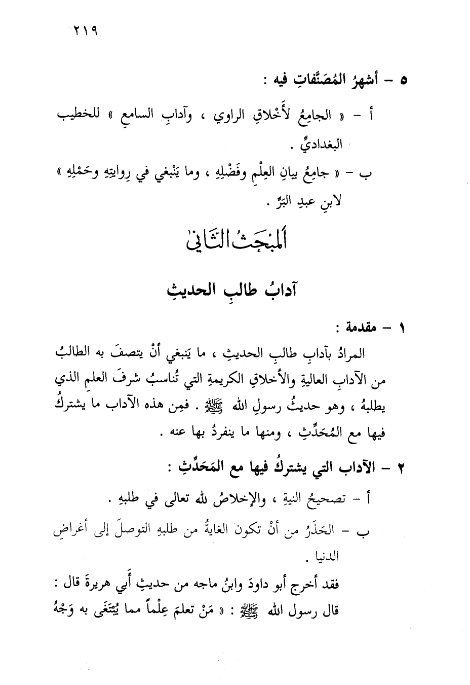 المبحث الثاني: آداب طالب الحديث