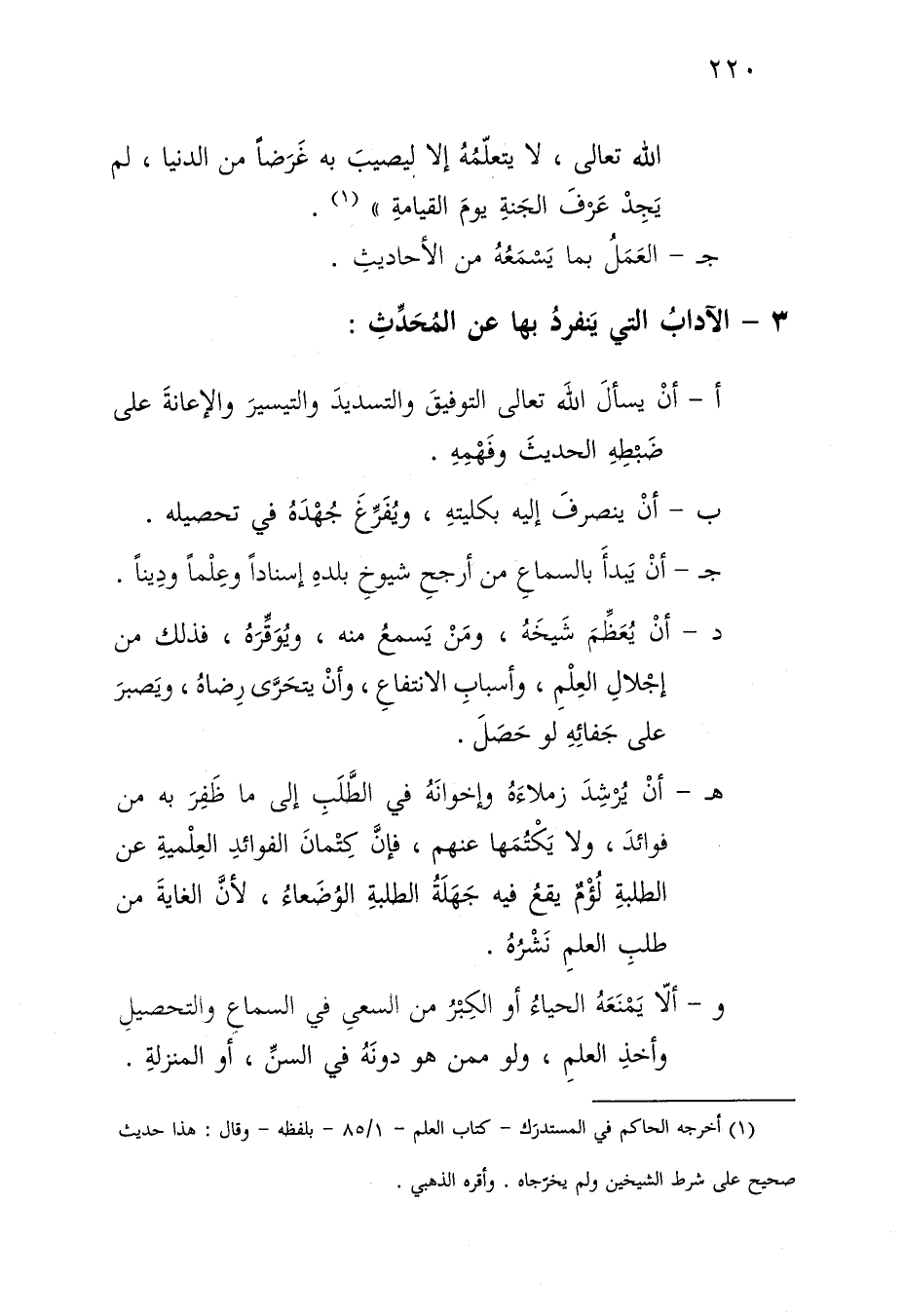 و ألا يمنعه الحياء أو الكبر من السعي في السماع والتحصيل وأخذ العلم، ولو ممن هو دونه في السن، أو المنزلة.