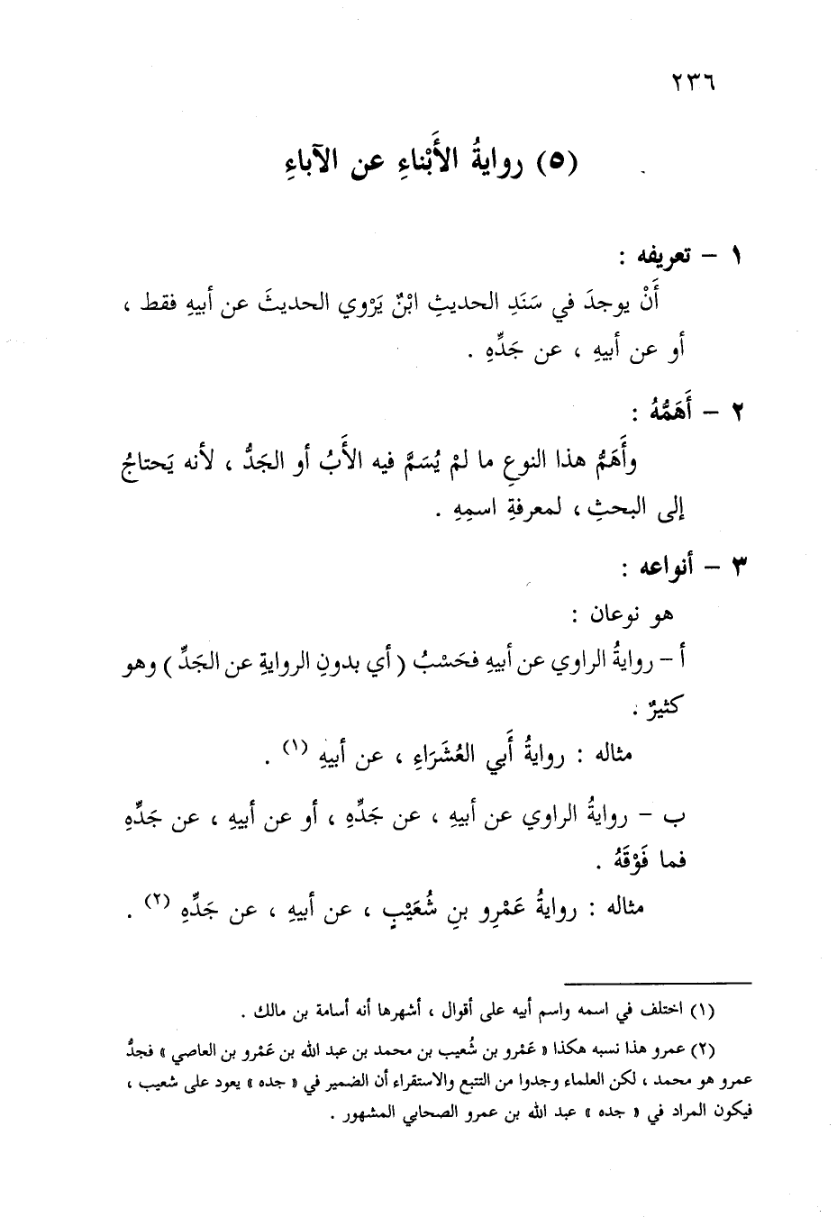 أ- رواية الراوي عن أبيه فحسب "أي بدون الرواية عن الجد" وهو كثير.