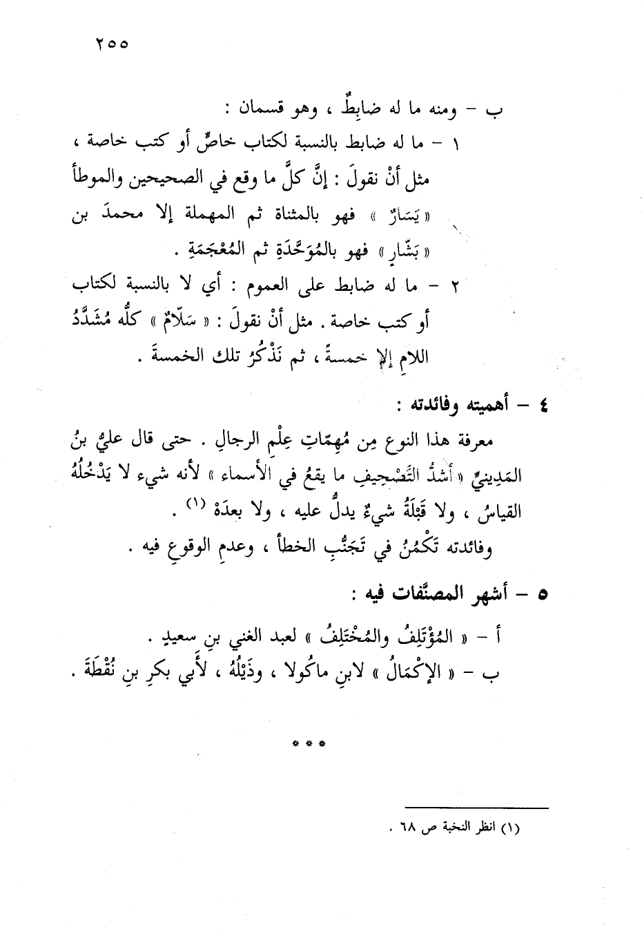 1- ما له ضابط بالنسبة لكتاب خاص أو كتب خاصة، مثل أن نقول: إن كل ما وقع في الصحيحين والموطأ "يسار" فهو بالمثناة ثم المهملة إلا محمد بن بن "بشار" فهو بالموحدة ثم المعجمة.