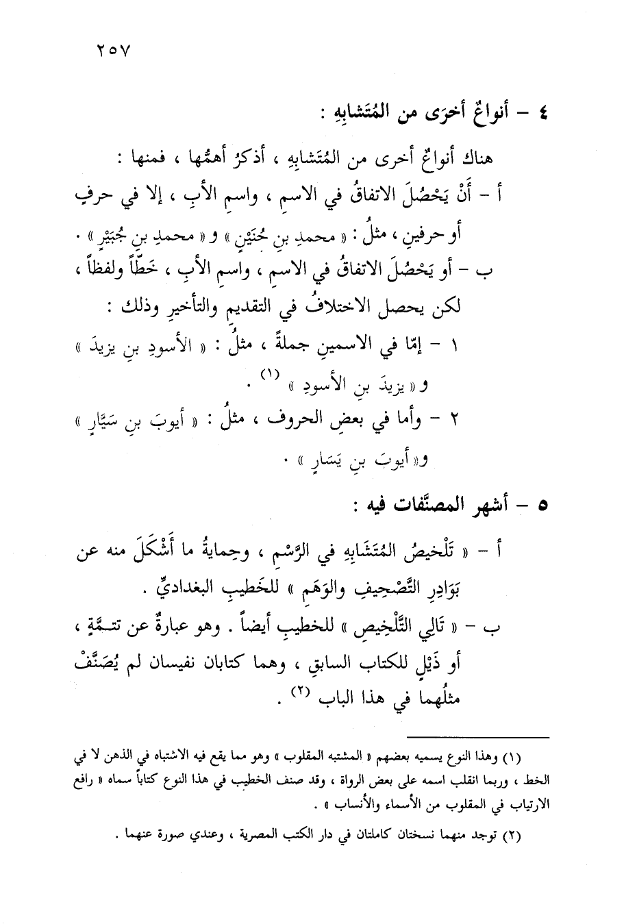 أ- "تلخيص المتشابه في الرسم، وحماية ما أشكل منه عن بوادر التصحيف والوهم"، للخطيب البغدادي.