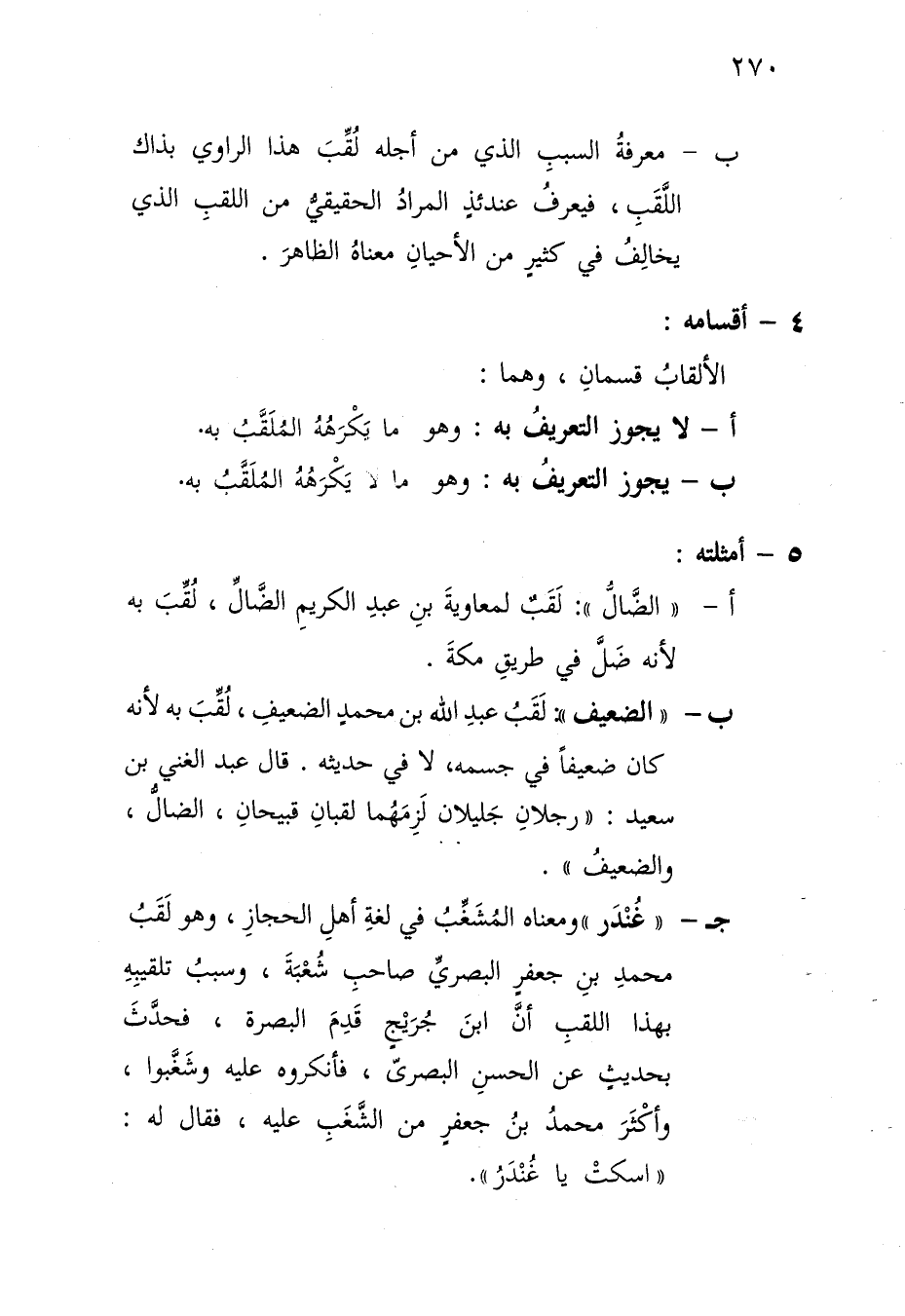 ب- معرفة السبب الذي من أجله لُقِّبَ هذا الراوي بذاك اللقب، فيعرف عندئذ المراد الحقيقي من اللقب الذي يخالف في كثير من الأحيان معناه الظاهر.
