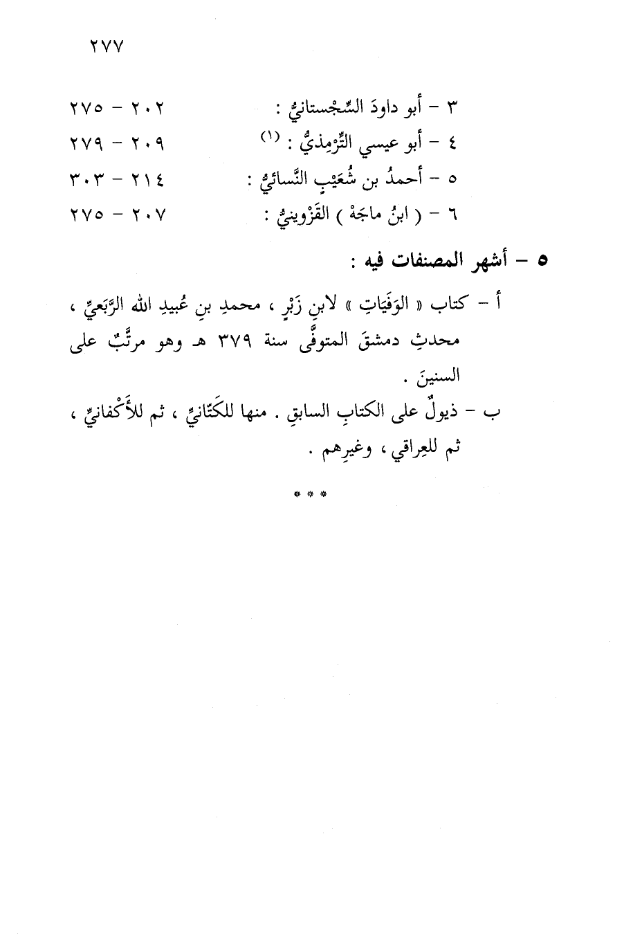 أ- كتاب "الوفيات" لابن زبر، محمد بن عبيد الله الربعي، محدث دمشق المتوفى سنة 379 هـ وهو مرتب على السنين.