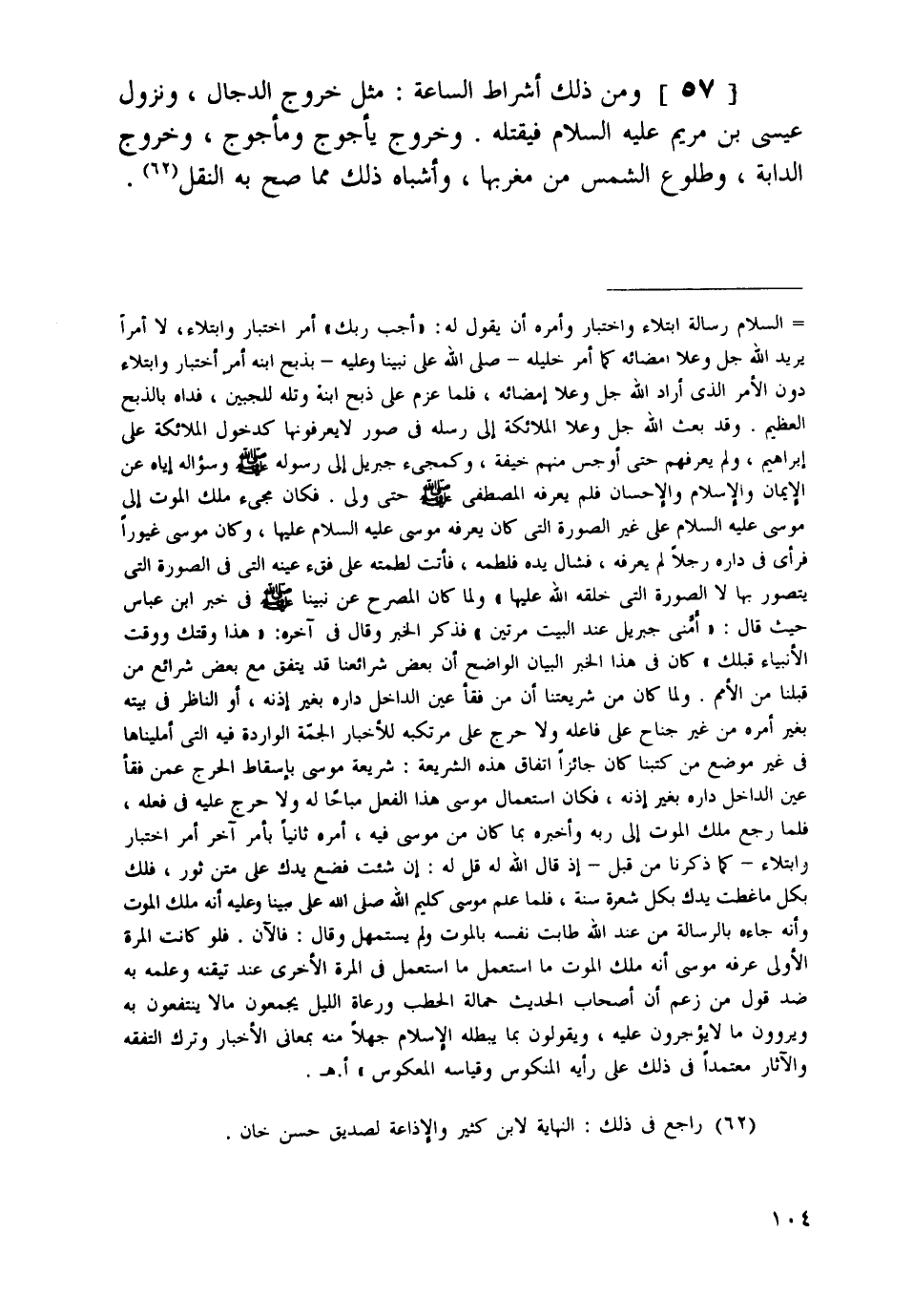 62 راجع في ذلك: النهاية لابن كثير، و"الإذاعة" لصديق حسن خان.