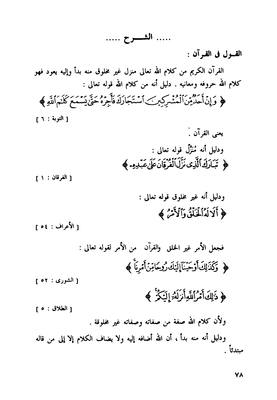 ودليل أنه مُنَزَّلٌ قوله تعالى: {تَبَارَكَ الَّذِي نَزَّلَ الْفُرْقَانَ عَلَى عَبْدِهِ} [الفرقان: 1] .
