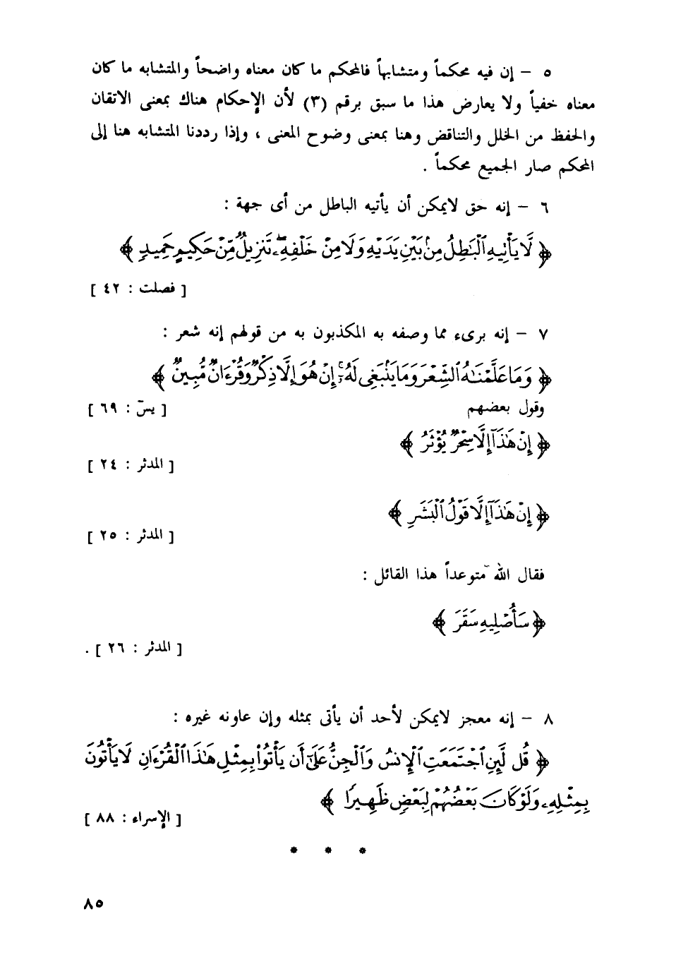 8- أنه معجز لا يمكن لأحد أن يأتي بمثله وإن عاونه غيره: