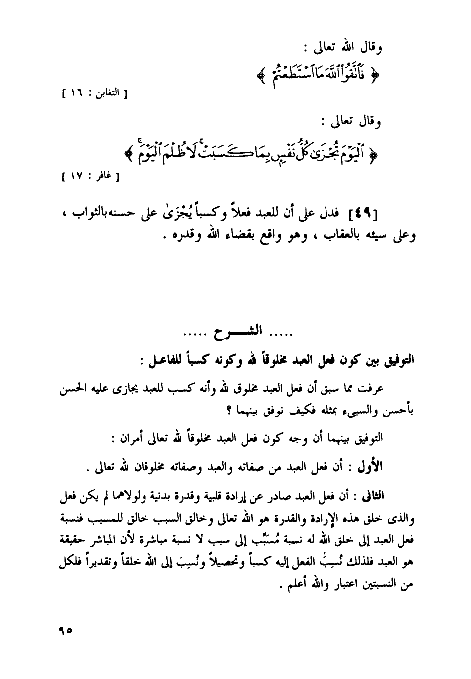 التوفيق بين كون فعل العبد مخلوقاً لله وكونه كسبًا للفاعل: