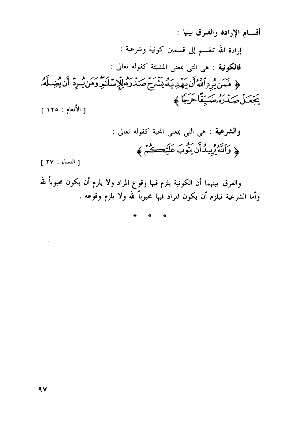إرادة الله تنقسم إلى قسمين كونية وشرعية: