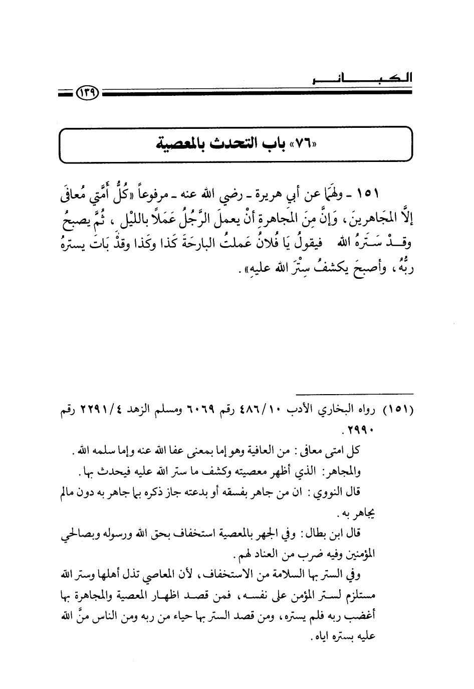 " 76 " باب التحدث بالمعصية