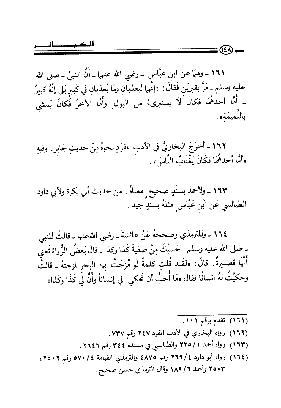 (164) رواه أبو داود 4 / 269 رقم 4875 والترمذي القيامة 4 / 570 رقم 2502، 2503 وأحمد 6 / 189 وقال الترمذي حسن صحيح.