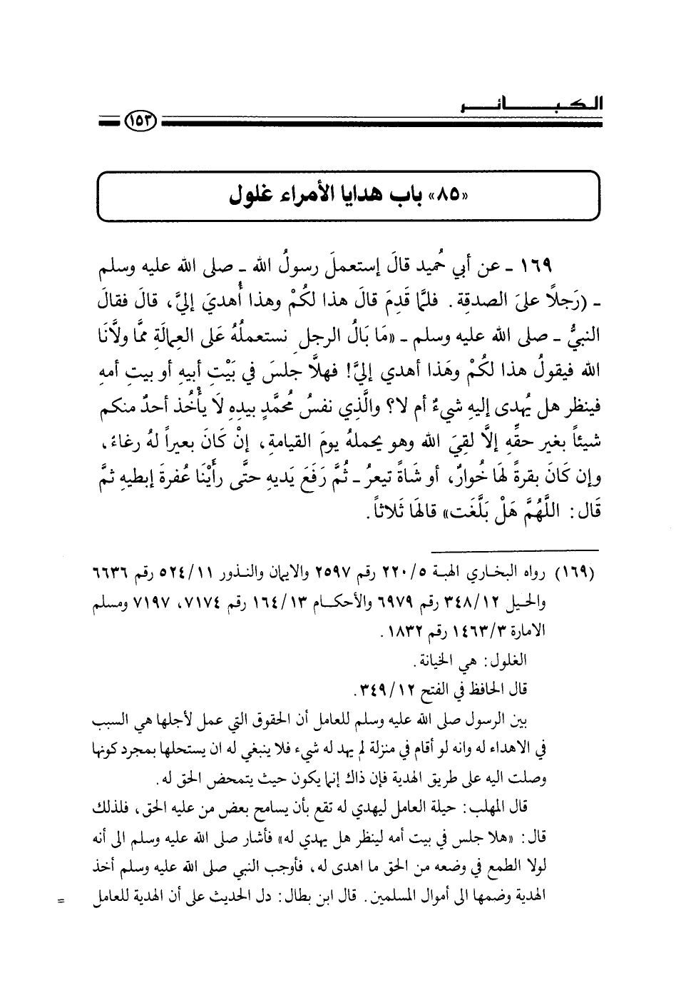 " 85 " باب هدايا الأمراء غلول