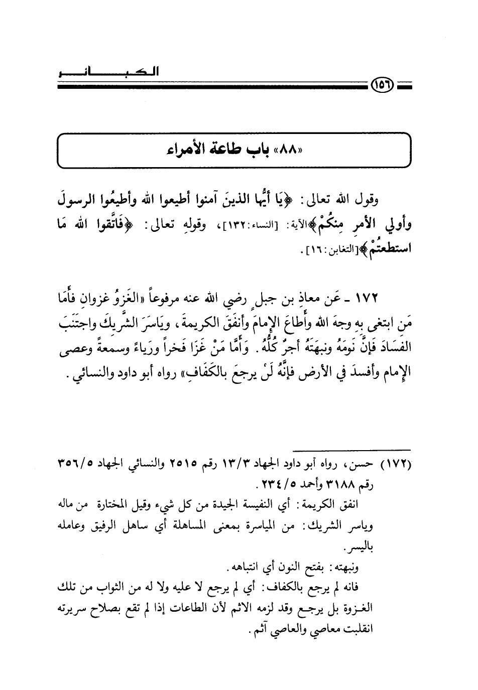 (172) حسن، رواه أبو داود الجهاد 3 / 13 رقم 2515 والنسائي الجهاد 5 / 356 رقم 3188 وأحمد 5 / 234.