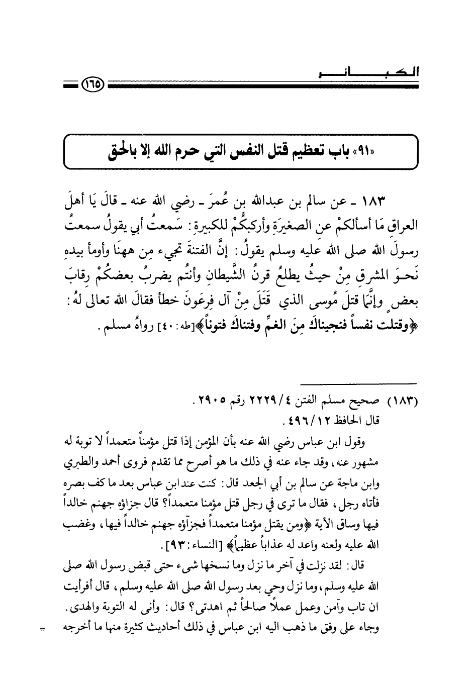 " 91 " باب تعظيم قتل النفس التي حرم الله إلا بالحق