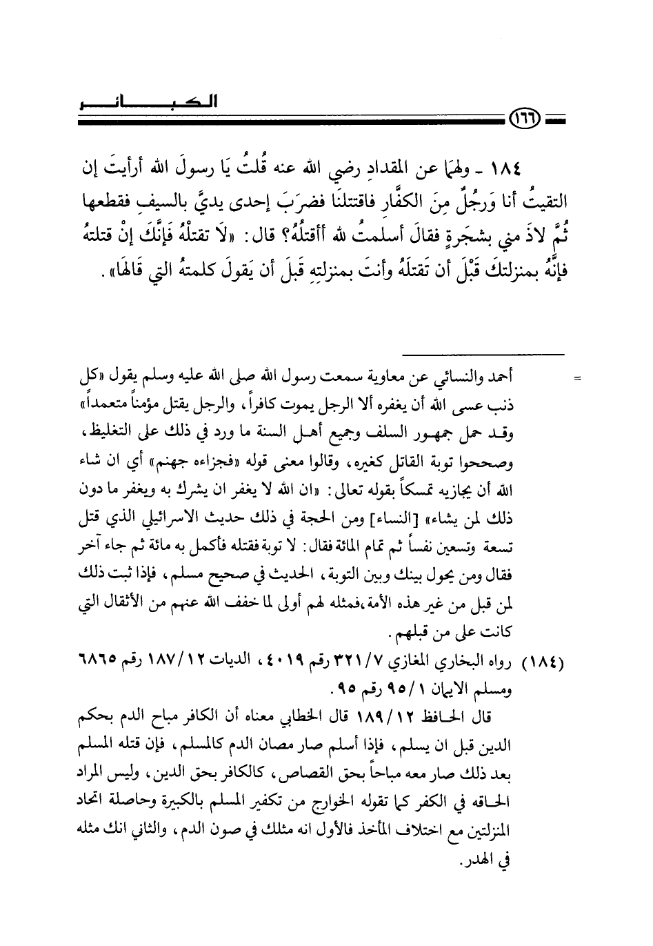 (184) رواه البخاري المغازي 7 / 321 رقم 4019، الديات 12 / 187 رقم 6865 ومسلم الإيمان 1 / 95 رقم 95.