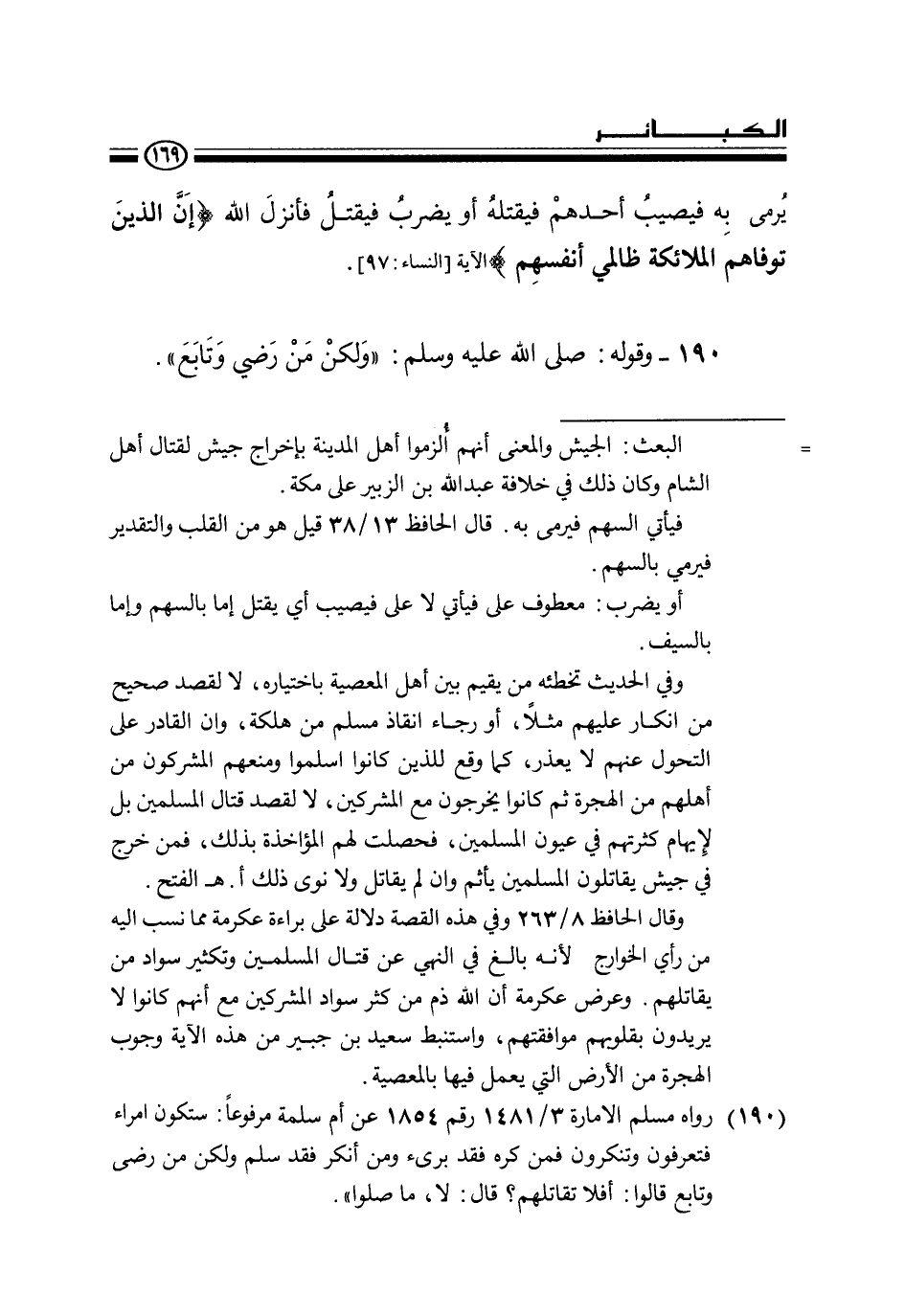 190 - وقوله: صلى الله عليه وسلم: «وَلَكِنْ مَنْ رَضِيَ وَتَابَعَ» .