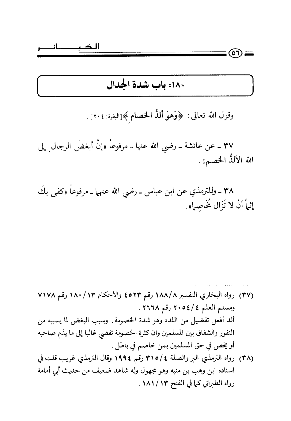 " 18 " باب شدة الجدال وقول الله تعالى: {وَهُوَ أَلَدُّ الْخِصَامِ}