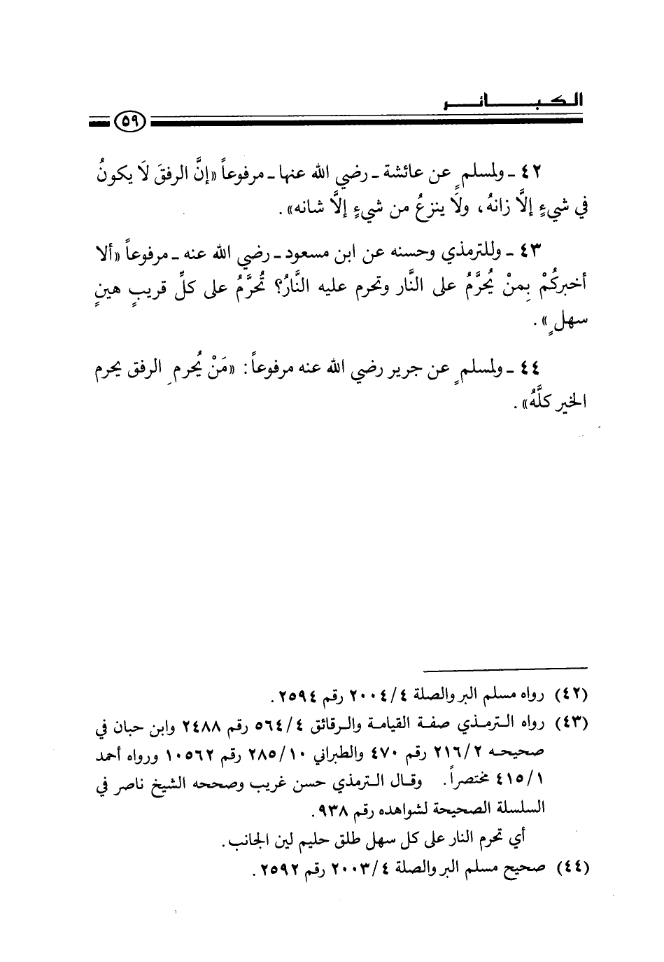 44 - ولمسلم عن جرير رضي الله عنه: «من يحرم الرفق يحرم الخير كله» .