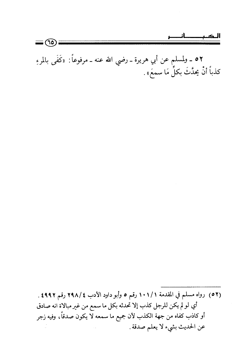 (52) رواه مسلم في المقدمة 1 / 101 رقم 5 وأبو داود الأدب 4 / 298 رقم 4992.