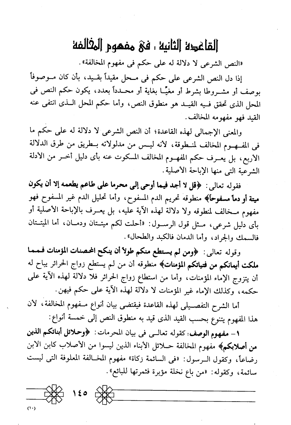 "النص الشرعي لا دلالة له على حكم في مفهوم المخالفة".