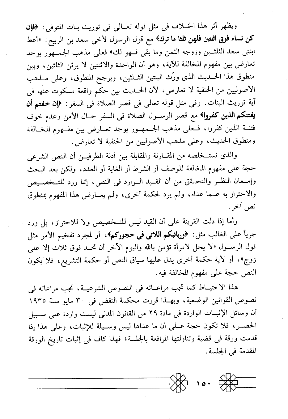هذا الاحتياط كما تجب مراعاته في النصوص الشرعية، تجب مراعاته في نصوص القوانين الوضعية، وبهذا قررت محكمة النقض في 30 مايو سنة 1935 أن وسائل الإثبات الواردة في مادة 29 من القانون المدني ليست واردة على سبيل الحصر، فلا تكون حجة على أن ما عداها ليس وسيلة للإثبات، وعلى هذا إذا قدمت ورقة في قضية وتناولتها المرافعة بالجلسة؛ فهذا كاف في إثبات تاريخ الورقة المقدمة في الجلسة.