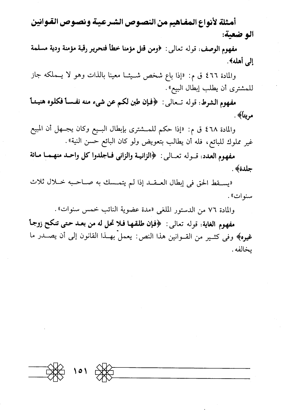 أمثلة لأنواع المفاهيم من النصوص الشرعية، ونصوص القوانين الوضعية: