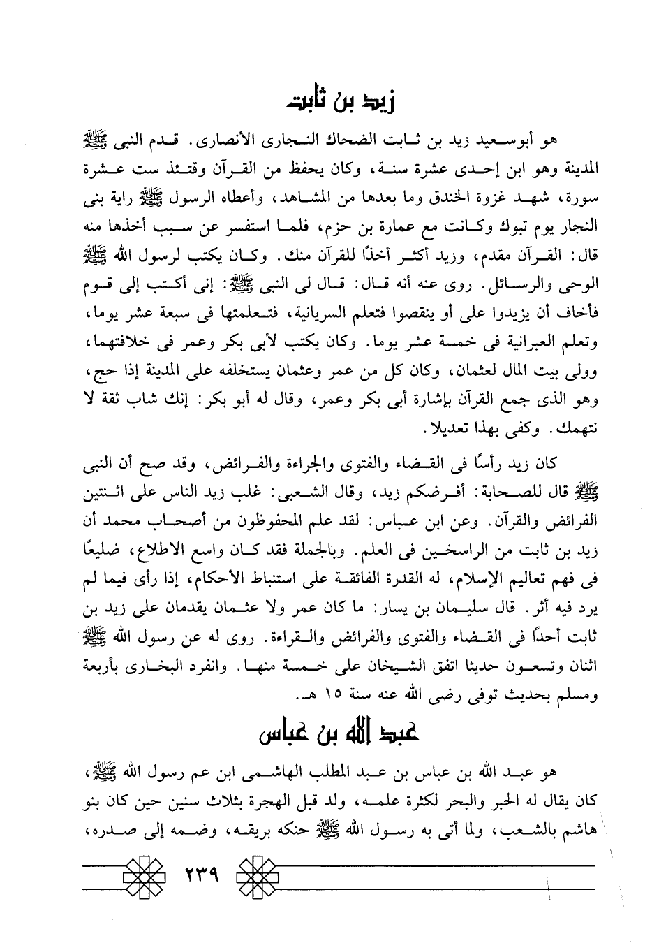 هو أبو سعيد زيد بن ثابت الضحاك النجاري الأنصاري. قدم النبي -صلى الله عليه وسلم- المدينة وهو ابن إحدى عشرة سنة، وكان يحفظ من القرآن وقتئذ ست عشرة سورة، شهد غزوة الخندق وما بعدها من المشاهد، وأعطاه الرسول -صلى الله عليه وسلم- راية بني النجار يوم تبوك وكانت مع عمارة بن حزم، فلما استفسر عن سبب أخذها منه قال: القرآن مقدم، وزيد أكثر أخذًا للقرآن منك. وكان يكتب لرسول الله -صلى الله عليه وسلم- الوحي والرسائل. روي عنه أنه قال: قال لي النبي -صلى الله عليه وسلم: "إني أكتب إلى قوم فأخاف أن يزيدوا علي أو ينقصوا فتعلم السريانية"، فتعلمتها في سبعة عشر يوما، وتعلم العبرانية في خمسة عشر يوما. وكان يكتب لأبي بكر عمر في خلافتهما، وولي بيت المال لعثمان، وكان كل من عمر وعثمان يستخلفه على المدينة إذا حج، وهو الذي جمع القرآن بإشارة أبي بكر وعمر، وقال له أبو بكر: إنك شاب ثقة لا نتهمك. وكفى بهذا تعديلًا.
