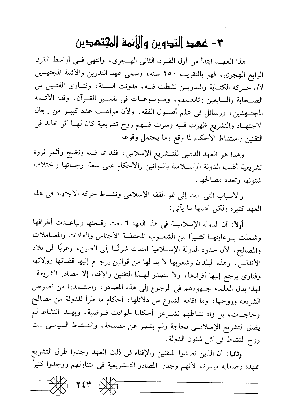 وهذا هو العهد الذهبي للتشريع الإسلامي، فقد نما فيه ونضج وأثمر ثورة تشريعية أغنت الدولة الإسلامية بالقوانين والأحكام على سعة أرجائها واختلاف شئونها وتعدد مصالحها.