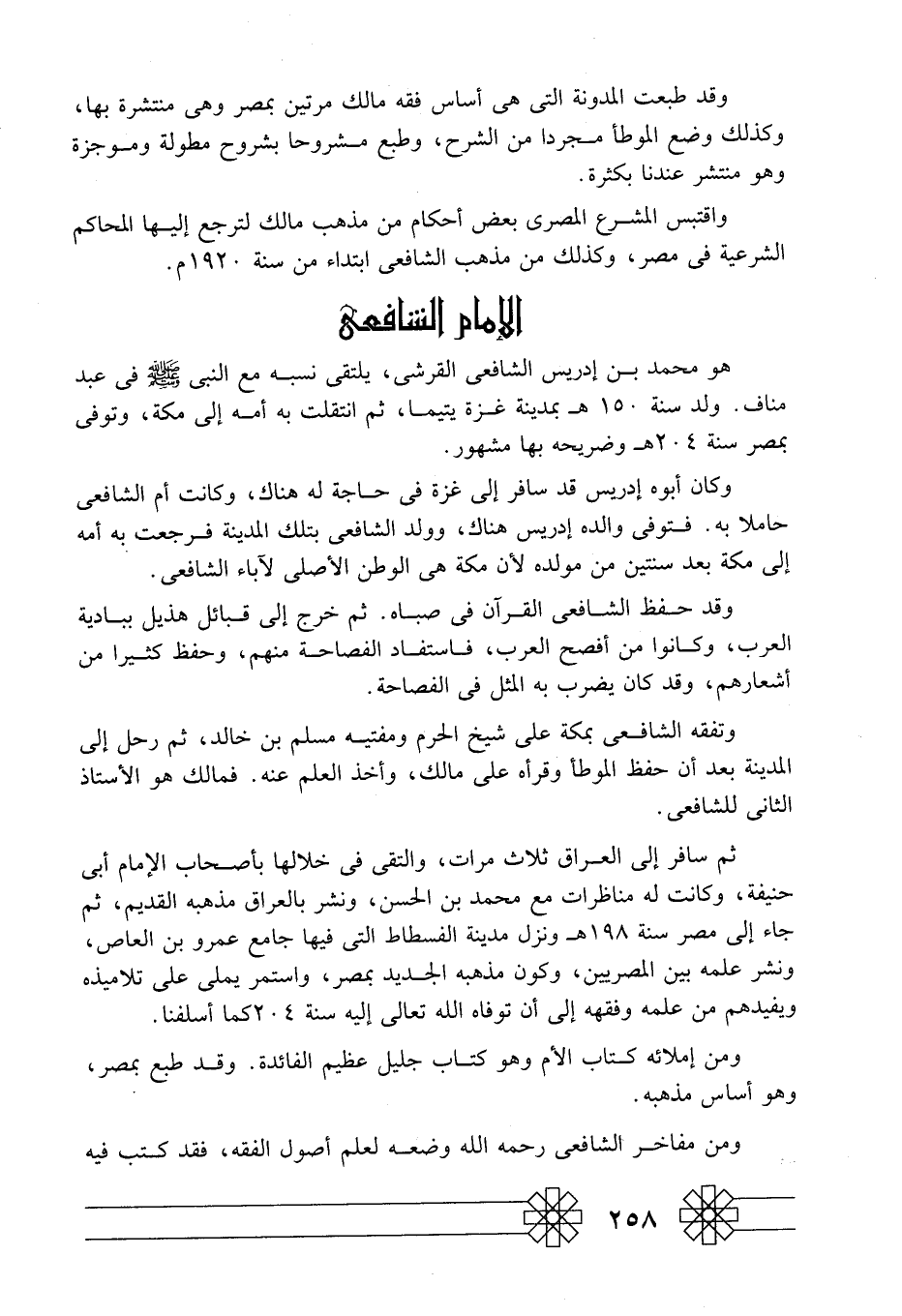هو محمد بن إدريس الشافعي القرشي، يلتقي نسبه مع النبي -صلى الله عليه وسلم- في عبد مناف. ولد سنة 150هـ بمدينة غزة يتيما، ثم انتقلت به أمه إلى مكة، وتوفي بمصر سنة 204هـ وضريحه بها مشهور.