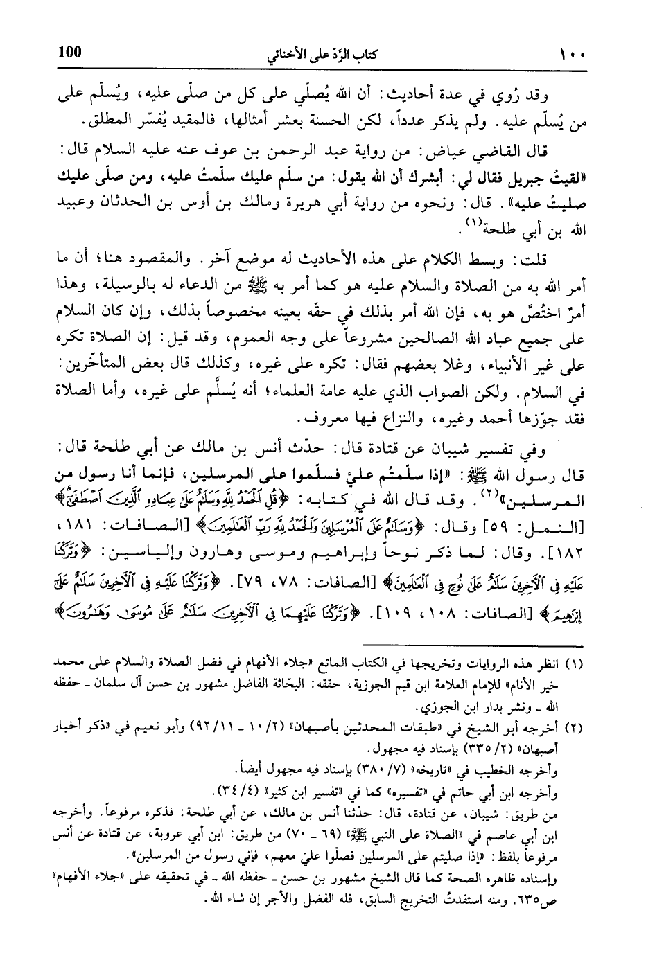 (1) انظر هذه الروايات وتخريجها في الكتاب الماتع «جلاء الأفهام في فضل الصلاة والسلام على محمد خير الأنام» للإمام العلامة ابن قيم الجوزية، حققه: البحّاثة الفاضل مشهور بن حسن آل سلمان- حفظه الله- ونشر بدار ابن الجوزي.