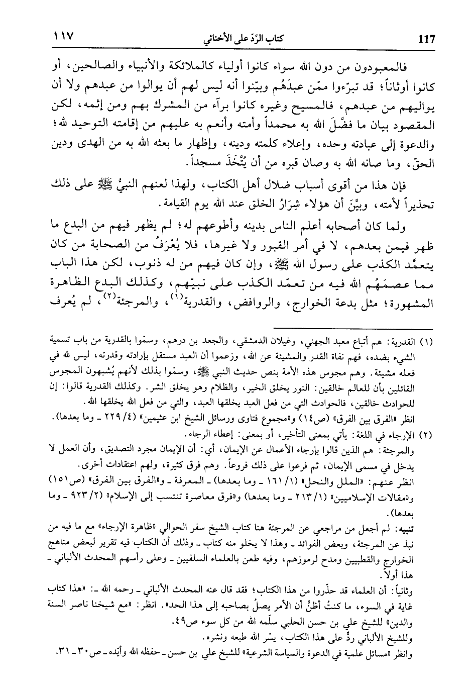 تنبيه: لم أجعل من مراجعي عن المرجئة هنا كتاب الشيخ سفر الحوالي «ظاهرة الإرجاء» مع ما فيه من نبذ عن المرجئة، وبعض الفوائد- وهذا لا يخلو منه كتاب- وذلك أن الكتاب فيه تقرير لبعض مناهج الخوارج والقطبيين ومدح لرموزهم، وفيه طعن بالعلماء السلفيين- وعلى رأسهم المحدث الألباني- هذا أولا.