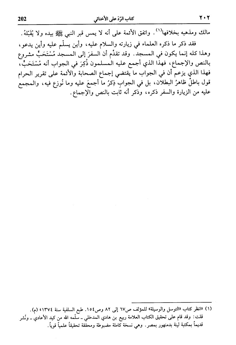 (1) «انظر كتاب «التوسل والوسيلة» للمؤلف ص 67 إلى 82 وص 154. طبع السلفية سنة 1374» (م).